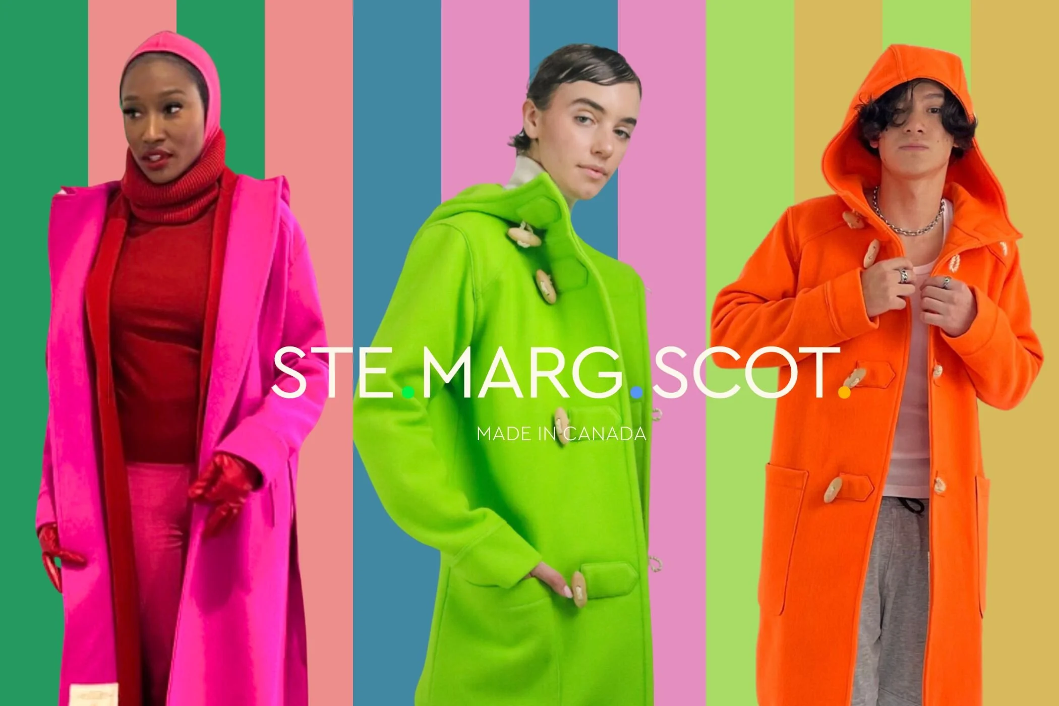 Based in Toronto, Ste. Marg Scot is a Canadian-made outerwear and accessories brand that disrupts winter’s sea of sameness with colourful, gender-inclusive wool coats crafted under a plastics- and metals-free philosophy. Alongside their signature coats, the line also includes thoughtfully designed accessories and bags, all made with heirloom-quality wool, hand-carved maple details, and a commitment to timeless, sustainable craftsmanship.